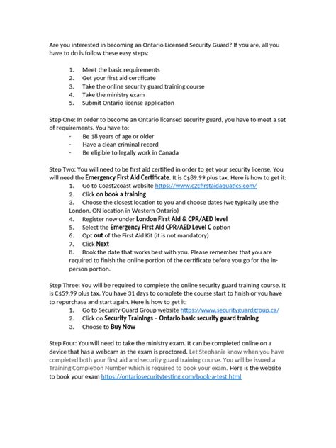 Okay, so you’ve met the basic requirements, but what’s next? You’re going to need some training and certifications. These are essential, and they’ll vary depending on where you live and the type of security work you want to do. First off, you’ll need to complete a state-approved security guard training program. This will cover a range of topics, including basic security procedures, how to handle emergencies, and legal aspects of the job. You’ll likely learn about patrol techniques, how to write incident reports, and how to interact with the public. The specifics will vary from state to state, so make sure you check your local regulations. Then, there’s the certification. Once you’ve completed the training, you’ll need to pass an exam to get your security guard license. This license is your official ticket to working as a security guard. Depending on your state, you might need to renew this license periodically, so keep an eye on those deadlines. Beyond the basic license, you might need specialized certifications. For example, if you want to carry a firearm, you’ll need to complete a firearms training course and pass a shooting proficiency test. Or, if you’re working in a specific industry, you might need training related to that industry. Finally, let’s not forget about CPR and First Aid certifications. These are often required and are super valuable, as they equip you with the skills to handle medical emergencies. So, be prepared to invest some time and effort into your training and certifications – it’s a necessary step to becoming a security guard and will help you stand out from the crowd.