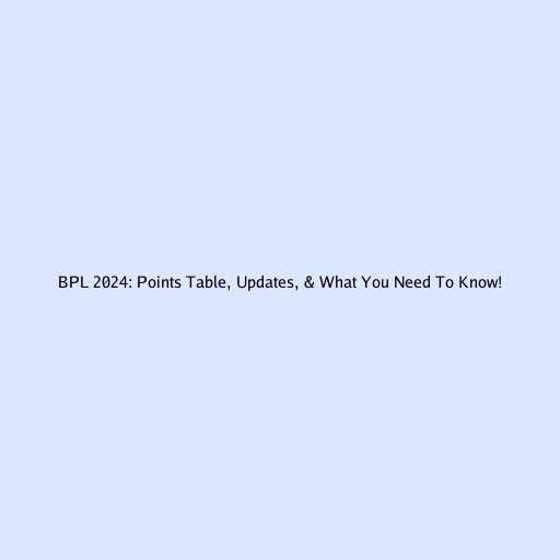 BPL 2024: Points Table, Updates, & What You Need To Know!