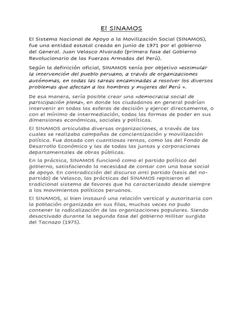 Alright, let’s turn our attention to SINAMOS . What was it all about? In essence, SINAMOS was a government initiative launched in Peru during the military government of General Juan Velasco Alvarado. The main goal of SINAMOS was to mobilize and organize the population, aiming to support the government’s reforms and promote social participation. It was a bold undertaking, designed to bring about significant social and economic changes across the country. It was founded on the idea that the active participation of the people was essential to the success of the revolution that the government sought to implement. SINAMOS was supposed to be a bridge between the government and the population, to include diverse voices and ensure that the government’s policies reflected the people’s aspirations. It was, in theory, a way to empower the citizens and make them active agents of change. This organization was built on a series of ideologies and principles aimed at creating a more just and equitable society. The organization aimed to address issues of poverty, inequality, and lack of access to basic services. The implementation of its goals involved creating several programs and initiatives. SINAMOS played a major role in several areas, including education, health, and economic development. The aim was to build a society where everyone would have equal opportunities and a chance to improve their quality of life. SINAMOS’s mission was ambitious, and it sought to transform the very foundations of Peruvian society.