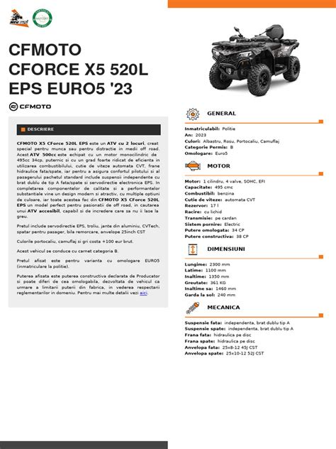 Let’s start with the basics, shall we? The CFMOTO CFORCE X5 520L EPS T3B is a versatile ATV designed to handle a variety of tasks, from recreational riding to demanding work duties. “ T3B ” typically refers to its homologation, which means it’s approved for road use in certain regions. The “ EPS ” indicates that it has Electronic Power Steering , which greatly enhances the riding experience. The “ 520L ” signifies the engine size and the “L” often suggests it’s a longer wheelbase version, providing extra stability and space.