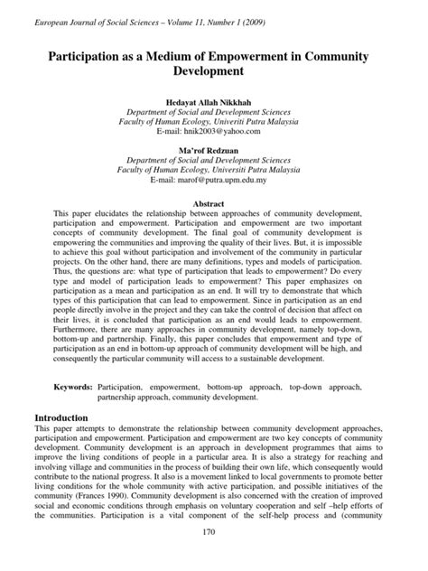 Journals dedicated to community empowerment often feature articles that explore the social, economic, and political dimensions of empowerment. They may also examine the role of various actors, such as community organizations, government agencies, and philanthropic foundations, in supporting empowerment initiatives. Additionally, these journals may publish articles that evaluate the impact of empowerment programs and policies, providing valuable insights into what works and what doesn’t. By providing a platform for sharing knowledge and best practices, journals contribute to the ongoing development of the field of community empowerment and help to ensure that efforts to promote community well-being are informed by evidence and guided by ethical principles.