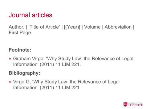 Here are some of the key things you need to remember about OSCOLA , guys: First, you’ll need to know the proper order for your references. For legislation, that means the name of the Act, the year, and the jurisdiction (like ‘Companies Act 2006 (UK)’). Then, you include pinpoint references using section and subsection numbers, if needed. For example, if you’re citing section 1 of the Companies Act 2006, your footnote would look something like this: Companies Act 2006, s 1. You also need to know when to use italics – generally, the names of cases and books are italicized. Journal article titles are not italicized, but the journal name is. Lastly, always create a bibliography at the end of your work. This is a complete list of all the sources you’ve used. This is where you put all the information in full, which allows readers to have a complete picture of your research and sources. Now, pinpoint references, these are super important. They show your reader exactly where to find the information you’re citing. This could be a specific section, subsection, or paragraph in the Companies Act 2006 . Make sure you understand how to use these accurately! Understanding these elements will help you to create accurate and professional legal documents. Let’s make sure you get those citations right, shall we?
