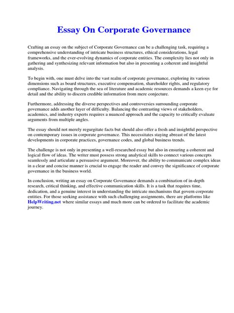 Corporate Governance: A Comprehensive Essay