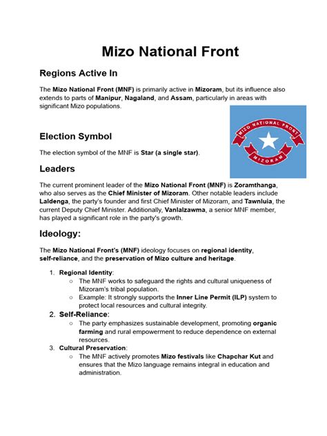 The MNF today stands as a crucial advocate for Mizo identity, culture, and economic progress within the Indian Union. Its emphasis on regional development, cultural preservation, and strategic political alliances demonstrates a sophisticated approach to governance. Understanding the MNF is essential for anyone wanting to grasp the complexities of India’s diverse political landscape, especially the unique dynamics of the North-Eastern states. It’s a prime example of how a regional party, rooted in strong ethnic and cultural identity, can play a significant role in both state and national politics. So, the next time you hear about the MNF , you’ll know it’s much more than just an acronym; it’s a living legacy of struggle, resilience, and the enduring spirit of the Mizo people. Keep exploring, stay curious, and keep learning about the amazing tapestry of political science!