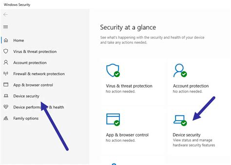 2. Navigate to Device Security: In the Windows Security window, click on the “Device Security” icon.