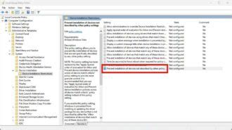 • Computer Configuration -> Administrative Templates -> System -> Device Installation -> Device Installation Restrictions