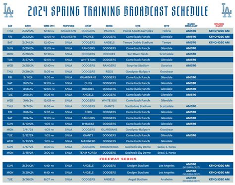 • Dodgers Team Website: Check the Los Angeles Dodgers’ official website. They’ll often have a dedicated page for spring training with a downloadable schedule. Sometimes, they even offer different versions, like one with or without game times.