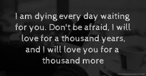 - “I die a little every day waiting for you.” This is a pretty literal translation, but it works! It retains the dramatic flair while being understandable. The words “a little” help to take the intense edge off of “every day.”