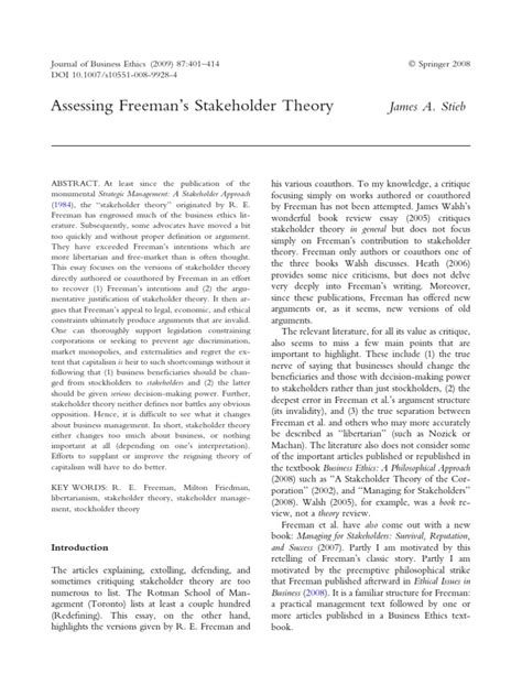 So, who is Edward Freeman , and why should we care about his ideas? Freeman is a renowned business professor and philosopher who challenged the traditional view of corporate responsibility. Before his work, the dominant thought was that companies primarily existed to maximize profits for their shareholders. Freeman’s 1984 book, Strategic Management: A Stakeholder Approach , flipped that script. He argued that businesses have a responsibility to consider the interests of all stakeholders, not just shareholders. This includes employees, customers, suppliers, communities, and anyone else who is affected by or can affect the company. The core idea is that a company’s success depends on how well it manages its relationships with all these groups. It’s not just about making money; it’s about creating value for everyone involved. Think of it like a juggling act. You’ve got several balls in the air – employees, customers, suppliers – and you need to keep them all happy to succeed. If you drop one ball (say, by treating your employees poorly), the whole act suffers. Freeman’s theory provides a framework for understanding these relationships and making decisions that benefit everyone, not just the owners or a select few. This approach can lead to better long-term performance, stronger brand reputation, and a more sustainable business model. Freeman’s work wasn’t just theoretical; it was a call to action. He encouraged businesses to adopt a more ethical and responsible approach, recognizing that long-term success requires building trust and fostering positive relationships with all stakeholders. It’s a game changer, and it’s still super relevant today.
