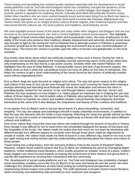 So go out there, embrace the spirit of adventure, and create your own unforgettable travel stories. Eva Zu Beck has shown us that the world is full of wonder and that the greatest experiences are often found off the beaten path. Happy travels, guys!