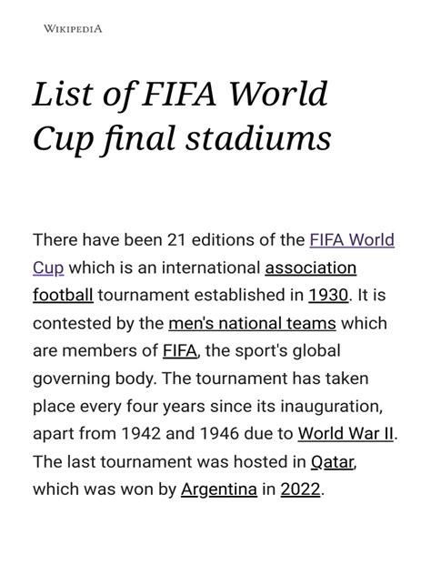 The FIFA World Cup , the pinnacle of international football, captivates billions worldwide. The final match, in particular, is steeped in history and drama, and the stadiums that host these games become iconic landmarks. Guys, let’s dive into the details of these legendary venues!