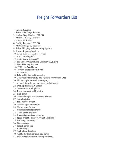 Okay, so where can you find these awesome freight forwarder directories? Luckily, there are several great options available online. One popular choice is industry-specific directories like the ones offered by freight forwarding associations. These directories often have a higher level of vetting and focus specifically on freight forwarding services. Another great resource is online business directories. These directories typically have a broader range of businesses listed, but they often include a dedicated category for freight forwarders . You can also check out specialized freight forwarding platforms. These platforms not only list freight forwarders but also offer tools for comparing quotes, tracking shipments, and managing your logistics. Some of the well-known platforms include websites of large freight forwarding companies, which often have directories of their partner agents. These can be a good option if you’re looking for a freight forwarder within a specific network. Remember to compare several directories to find the one that best suits your needs. Look for directories with comprehensive listings, robust filtering options, customer reviews, and up-to-date information.