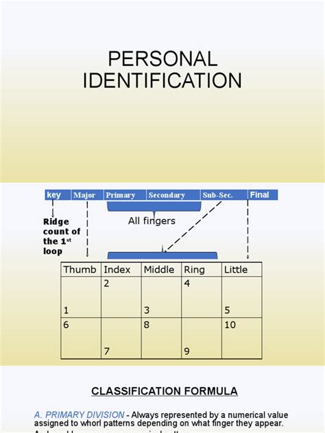 The primary goal of a fingerprint formula is to provide a unique identifier for each fingerprint, making it easier to search and match fingerprints in a database. Without a standardized formula, it would be incredibly time-consuming and difficult to manually compare fingerprints, especially in large databases containing millions of records. Fingerprint formulas make the process more efficient and accurate, enabling law enforcement and other agencies to quickly identify individuals and solve crimes. Fingerprint formulas are used in various applications, including criminal investigations, background checks, and security systems. In criminal investigations, fingerprint formulas help identify suspects by comparing fingerprints found at crime scenes to those stored in databases. In background checks, fingerprint formulas are used to verify the identity of individuals applying for jobs or licenses. In security systems, fingerprint formulas are used to authenticate users and grant access to secure areas or devices.