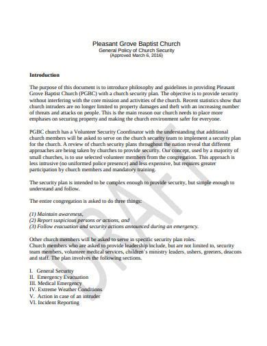 Free Church Security Plan Template
