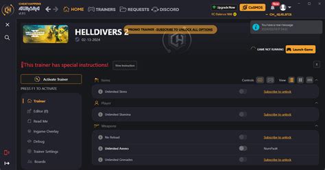 So, what kind of goodies are we talking about when we mention a Helldivers 2 trainer from Cheat Happens? While specific features can vary and are often updated as the game evolves, we can make some educated guesses based on typical trainer functionalities and the demands of Helldivers 2 ’s gameplay. Firstly, let’s talk about survival . In a game where death is a constant companion, features like infinite health or god mode are pretty high on many players’ wish lists. Imagine dropping into a Hellpod and knowing, no matter how many Bile Titans or Hulks decide to pay you a visit, you’re not going down. That’s some serious managed democracy insurance right there. Then there’s the ammunition situation. Helldivers 2 throws a lot of enemies at you, and keeping your magazines full can be a challenge, especially when you’re relying on specific weapons to take down heavily armored targets. A trainer could offer infinite ammo , meaning you can unleash a relentless barrage without ever needing to reload or scavenge for pickups. This is especially useful for those high-intensity defense missions where suppressing fire is key. Stratagem-wise , Helldivers 2 really shines, but those cooldowns can be brutal. A trainer might provide instant stratagem cooldowns , allowing you to call in airstrikes, support weapons, and reinforcements practically on demand. Imagine dropping an Eagle 500kg bomb every few seconds or spamming Gatling turrets to create an impenetrable fortress. Talk about spreading democracy effectively ! Beyond the direct combat buffs, trainers often include options for resource manipulation . This could mean giving yourself unlimited samples needed for upgrades, or perhaps instantly acquiring all the necessary research points to unlock new gear. This bypasses a significant portion of the game’s progression grind, allowing you to jump straight into using the most powerful equipment. We might also see quality-of-life features, such as no-clip mode (though this is less likely for a game with a strong co-op focus) or super speed to traverse the maps more quickly. Some trainers even offer ways to adjust enemy AI or disable certain threats , although this can significantly alter the game’s balance. The Cheat Happens trainer is generally known for its comprehensive feature sets, so it’s likely to include a mix of these game-changing options, designed to give players a significant edge and potentially a lot of fun experimenting with the game’s mechanics in new and explosive ways. It’s all about empowering the Helldiver to achieve victory, no matter the cost… or at least, no matter the ammo count.