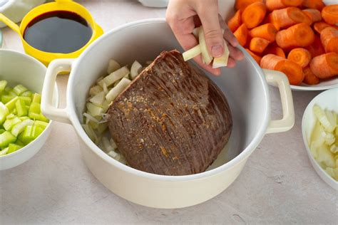 Now for the magic: slow cooking ! Return your beautifully seared roast to the pot, nestling it down into the liquid and veggies. The liquid should come about halfway to two-thirds up the sides of the roast. If it doesn’t, add a bit more beef broth or water. Cover the pot tightly with a lid. If your pot doesn’t have a tight-fitting lid, you can use a layer of parchment paper under the lid to help seal it. Place the covered pot in a preheated oven at 325°F (160°C) . We’re going to let this cook low and slow for 3 to 4 hours , or until the roast is fork-tender. What does fork-tender mean? It means you can easily pierce it with a fork, and it practically falls apart with minimal pressure. Don’t be tempted to lift the lid too often; each time you do, you lose heat and extend the cooking time. Trust the process, guys! The low temperature and long cooking time are essential for breaking down the tough muscle fibers and making that roast incredibly tender.