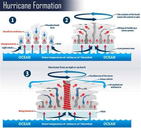 Now, the eye of the hurricane is a relatively calm area at the center of the storm, often surrounded by the eyewall – the area with the strongest winds and heaviest rainfall. The entire system is then pushed across the ocean by steering winds. The whole process is a complex interplay of atmospheric and oceanic forces, creating one of nature’s most powerful displays. Understanding these formation processes helps us track and prepare for these powerful storms. The warm ocean waters, the low pressure, and the Coriolis effect all play crucial roles in this incredible natural phenomenon.