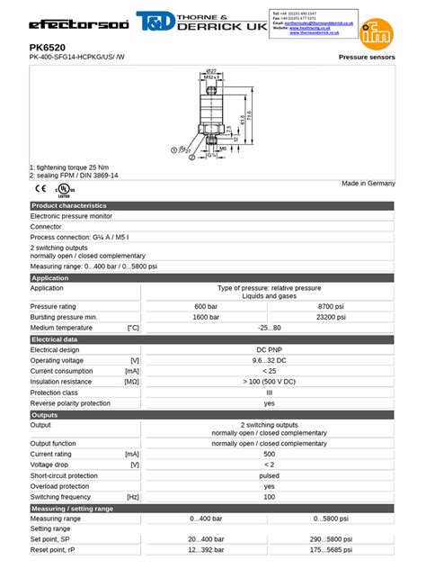 The versatility of IFM pressure switches is another reason for their widespread adoption. They can be found in various industries, including manufacturing, automotive, food and beverage, and water treatment. In each of these sectors, pressure monitoring is critical for ensuring product quality, process stability, and equipment longevity. IFM pressure switches are designed to withstand harsh industrial environments, offering robust performance even under demanding conditions. Whether it’s monitoring hydraulic pressure in a heavy machinery or ensuring proper air pressure in a packaging line, these switches deliver reliable and accurate results.