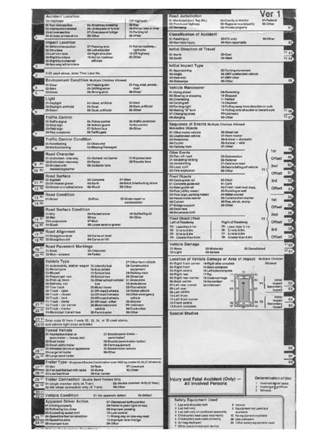 We’ve touched on this a bit, but let’s dedicate a section to the lighting and weather conditions codes . These are essential for understanding the environmental context of an accident. They directly impact visibility and vehicle handling. You’ll typically find codes for: