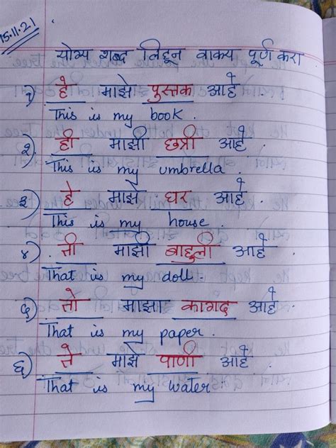 1. “पहिला डाव संपला आहे आणि भारताने ३०० धावा केल्या आहेत.” (Pahila daav sampla aahe ani Bharatane 300 dhava kely aahet.)