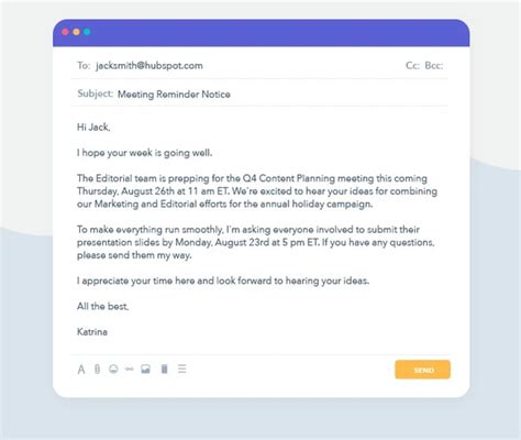 Provide Context: If necessary, provide a brief explanation or background information. This can help the person understand the importance of the reminder.