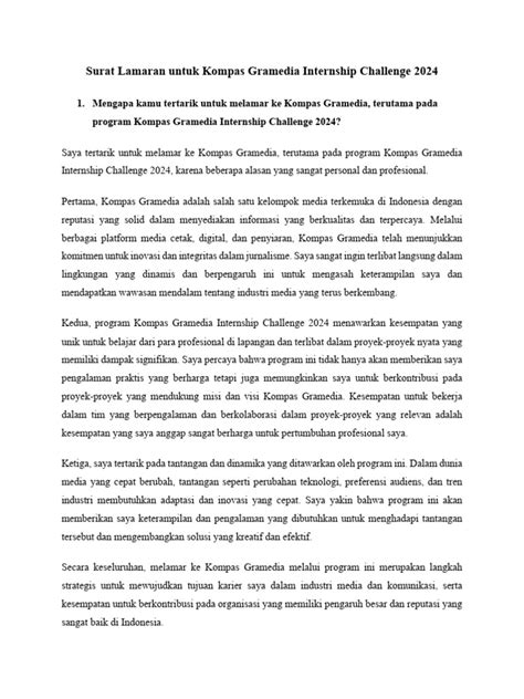 Don’t be afraid to ask questions and follow up on your application. Showing initiative can go a long way! To truly shine in the Kompas Gramedia Internship Challenge, it’s essential to go beyond simply meeting the basic requirements and demonstrate a genuine passion for learning and contributing to the company’s success. One of the most effective ways to do this is to thoroughly research Kompas Gramedia’s various businesses, values, and culture. Understanding the company’s mission and how it operates will not only help you tailor your application to their specific needs but also demonstrate your genuine interest in becoming a part of their team. Highlighting relevant skills is another crucial aspect of success. Carefully review the internship description and identify the key skills and experiences that are most valued. Then, focus on showcasing those skills in your resume, cover letter, and interview responses. Use specific examples to illustrate how you have used these skills in the past and how they can benefit Kompas Gramedia. Showing enthusiasm is also essential. Let your passion for the role and the company shine through in your interactions with the selection committee. Be genuinely interested in learning about their work and contributing to their goals. A positive attitude and a willingness to go the extra mile can make a lasting impression. Maintaining a professional attitude throughout the application process is also critical. Dress appropriately for interviews, communicate respectfully with the selection committee, and follow up promptly on any requests. Remember, you are representing yourself as a potential future employee of Kompas Gramedia, so it’s important to present yourself in a professional and polished manner. Finally, networking can be a valuable tool for success. Attend career fairs and networking events to meet Kompas Gramedia representatives and learn more about their internship program. Building connections with people who work at the company can give you valuable insights and increase your chances of being selected. By following these tips, you can significantly increase your chances of success in the Kompas Gramedia Internship Challenge and take the first step towards a rewarding career.