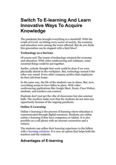 In Today’s Fast-Paced World: A New Way to Learn