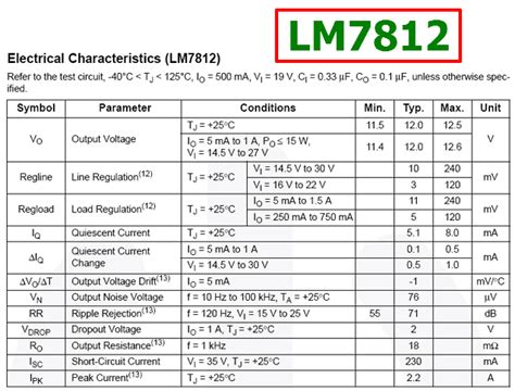 - Dropout Voltage (Vdo): As we discussed, this is the minimum difference between Vin and Vout. For the LM7812, it’s typically around 2V. This dictates your minimum input voltage requirement.
