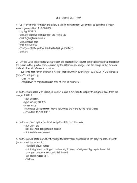 So, where do you actually find these magical MOS Excel practice resources ? This is a question I get asked a lot, and thankfully, there are some solid options out there. First off, official Microsoft resources are always a great place to start. Microsoft often provides study guides and sample exams directly on their MOS certification website. These are gold because they’re created by the source and align perfectly with the exam objectives. Make sure you’re downloading the objectives for the specific exam you’re taking, as they can differ slightly between versions (like Office 365, 2019, etc.). Another fantastic avenue is through authorized MOS training providers . Many colleges, universities, and private training centers offer MOS certification prep courses, and these often come bundled with high-quality practice tests and expert instruction. If you’re enrolled in a school or taking a course, definitely check what they offer. Beyond official channels, there are several third-party practice test providers that specialize in MOS exams. Companies like Certiport (the official vendor for MOS exams) often have partners or recommended platforms. Look for providers that offer adaptive testing, which adjusts the difficulty based on your performance, or simulations that closely mirror the actual exam interface. Online learning platforms like Udemy, Coursera, or LinkedIn Learning might also have comprehensive MOS Excel courses that include practice quizzes and tests. Read reviews carefully to ensure the content is up-to-date and accurate. Don’t underestimate the power of YouTube tutorials either. While not full practice tests, many instructors create detailed walkthroughs of common exam tasks, which can be incredibly helpful for understanding tricky concepts. Some might even offer downloadable practice files. When evaluating resources, consider these factors: Accuracy : Is the content up-to-date with the latest Excel version and MOS objectives? Relevance : Does it cover the core skills tested on the exam? Format : Does it simulate the actual exam interface and question types? Feedback : Does it provide detailed explanations for answers? Cost : Is it within your budget? Remember, the goal is to find resources that provide realistic MOS Excel exam practice and help you build confidence. Investing in a good set of practice tests can make all the difference between passing and needing to retake the exam. So, do your homework, check out the options, and choose wisely!