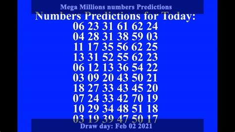 Hey guys! So, you’re looking to make some serious cash with the Mega Millions today, huh? That’s awesome! We all dream of that life-changing jackpot, and who knows, maybe today is YOUR day. But let’s be real, just picking random numbers is like throwing darts in the dark. That’s where Mega Millions predictions come in. While no one can guarantee a win (wouldn’t that be something?!), understanding the game and using smart strategies can definitely boost your chances and make playing a whole lot more fun and strategic. We’re going to dive deep into what goes into these predictions, look at some common strategies people use, and talk about how you can approach playing the Mega Millions today with a bit more confidence and a lot more informed decision-making. Forget about just hoping for the best; let’s talk about playing with a plan! We’ll explore everything from hot and cold numbers to the psychology behind lottery play, aiming to give you a comprehensive guide that’s both informative and super engaging. So, grab your lucky charm, get comfy, and let’s get ready to tackle the Mega Millions today with some awesome insights.