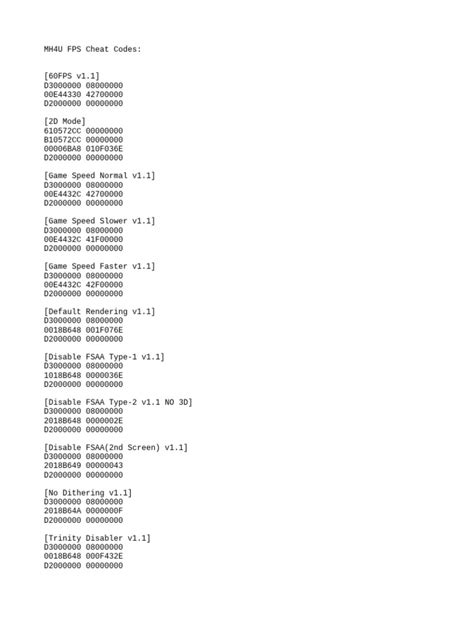 The MH4U 20 FPS cheat is a fascinating topic that highlights the flexibility and moddability of this classic game. While it might not be for everyone, it offers a unique way to experience the game and to explore its hidden depths. Whether you’re a speedrunner, a glitch hunter, or simply someone who likes to tinker with game settings, the 20 FPS cheat can open up new possibilities.