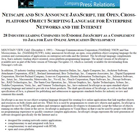 Hey guys! Ever wondered about the roots of the interactive web? Well, let’s dive into Netscape JavaScript , a critical piece of the puzzle that helped shape the internet as we know it today. It’s wild to think about how far things have come, right? From the clunky early days to the sleek, dynamic web experiences we enjoy now, Netscape played a huge role. Let’s rewind the clock and take a trip back to the mid-90s, when the internet was just starting to boom. We’ll explore the origins of JavaScript and how Netscape Communications, the company behind the groundbreaking Netscape Navigator browser, helped make it a reality. Prepare for a blast from the past, filled with nostalgic tech tales and insights into the evolution of web development. We’re going to break down the key aspects of Netscape JavaScript , its impact on the web, and how it laid the groundwork for modern web technologies.