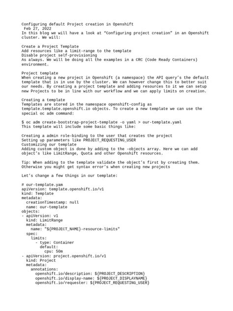 Now that we know why we need custom SCCs, let’s break down what goes into one. An SCC is essentially a Kubernetes CustomResourceDefinition (CRD) object, and when you create one, you’re defining a security.openshift.io/v1 object. The key components you’ll be configuring are: spec.allowHostDirVolumePlugin : This controls whether pods can use host directory volumes. spec.allowHostIPC : Determines if pods can use the host’s IPC namespace. spec.allowHostNetwork : Allows pods to use the host’s network namespace. spec.allowHostPID : Lets pods use the host’s PID namespace. spec.allowPrivilegeEscalation : If set to true , it allows processes to gain more privileges than their parent process. Usually set to false for better security. spec.allowedCapabilities : A list of Linux capabilities that can be added to the container. spec.defaultAddCapabilities : Linux capabilities that are automatically added to the container. spec.forbiddenCapabilites : Linux capabilities that are explicitly disallowed. spec.readOnlyRootFilesystem : If true , the container’s root filesystem must be mounted read-only. spec.runAsUser and spec.runAsGroup : Define the UID/GID a container process should run as. You can specify a single UID/GID, a range, or use MustRunAs or MustRunAsRange strategies. spec.seLinuxContext : Defines the SELinux context for pods. You can specify seLinuxOptions with type , level , role , and user . Strategies like MustRunAs and MustRunAsRange are common here too. spec.fsGroup : Defines the fsGroup for pods, which is used to manage permissions on mounted volumes. spec.priority : An integer that determines the order in which SCCs are evaluated. Lower numbers have higher priority. spec.users : A list of users who are allowed to use this SCC. spec.groups : A list of groups who are allowed to use this SCC. spec.serviceAccounts : A list of service accounts that are allowed to use this SCC. spec.volumes : A list of volume types that are allowed for pods using this SCC. This is a crucial part, guys, as it defines precisely what your pods can and cannot do. When defining these, think about the principle of least privilege. Only grant what is absolutely necessary. For example, if your application doesn’t need network access, don’t allow hostNetwork . If it doesn’t need elevated capabilities, restrict allowedCapabilities as much as possible. Mastering these parameters is key to crafting secure and functional SCCs. The YAML definition will look like a standard Kubernetes resource, but with the OpenShift security.openshift.io/v1 API version. We’ll cover the actual YAML creation in the next section, but understanding these building blocks is fundamental to creating effective SCCs. It’s also worth noting that if users , groups , and serviceAccounts are all empty, the SCC applies to everyone by default, which is usually not what you want for custom SCCs. You’ll typically restrict access to specific users, groups, or service accounts that absolutely need it.