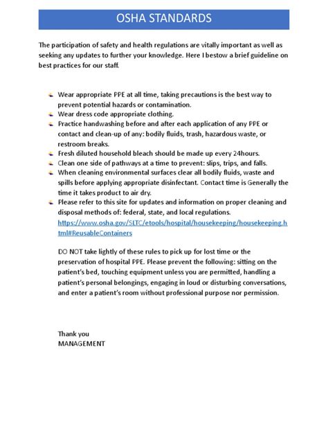 Now, let’s talk about the upside. Why should hospitals go the extra mile to ensure OSHA hospital compliance? The benefits are substantial and extend far beyond just avoiding fines. Firstly, and most importantly, improved patient safety . When staff are well-trained, equipped, and following safety protocols, the risk of medical errors, infections, and patient falls decreases significantly. This directly contributes to better patient outcomes and a more positive healing environment. Secondly, enhanced employee morale and retention . When employees feel safe and valued, they are more likely to be engaged in their work and committed to their employer. A strong safety record reduces employee injuries, leading to fewer lost workdays, lower workers’ compensation costs, and a more stable, experienced workforce. Who wants to work in a place where they feel constantly at risk, right? Thirdly, reduced operational costs . While implementing safety programs requires investment, the long-term cost savings are considerable. Preventing injuries and illnesses means lower medical expenses, reduced insurance premiums, fewer legal liabilities, and less downtime for injured workers. Think about the cost of a serious injury versus the cost of a safety training program. The math usually works out in favor of prevention. Fourthly, stronger reputation and public trust . Hospitals that demonstrate a commitment to safety, both for patients and staff, build a reputation for excellence and reliability. This can attract more patients, skilled professionals, and positive community relations. Conversely, a serious safety violation can severely damage a hospital’s reputation. Lastly, regulatory compliance and avoidance of penalties . This is the most obvious benefit. Adhering to OSHA standards helps hospitals avoid citations, fines, and the costly process of defending against violations. It ensures the hospital is operating within the legal framework, maintaining its license and accreditation. Ultimately, embracing OSHA standards isn’t just about ticking boxes; it’s about fostering a culture of care and responsibility that benefits everyone – patients, staff, and the entire healthcare organization.