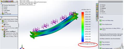 8. View Results: SolidWorks will show you a colorful plot of the Von Mises stress distribution. Red areas are high stress, blue areas are low stress.