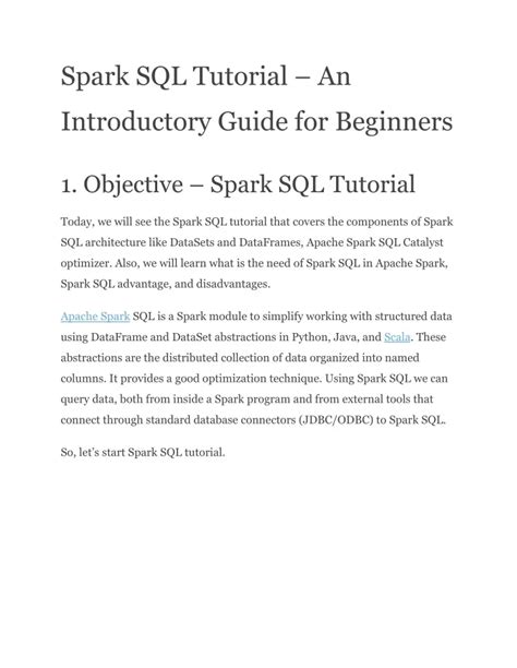Hey guys! Welcome to this comprehensive Spark SQL tutorial! If you’re looking to dive into the world of big data processing and analysis , you’ve come to the right place. Spark SQL is a powerful tool within the Apache Spark ecosystem that allows you to process structured data with SQL, making it super accessible for anyone familiar with SQL. So, let’s jump right in and explore the amazing capabilities of Spark SQL!