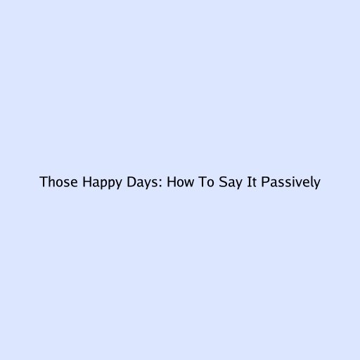 Those Happy Days: How To Say It Passively