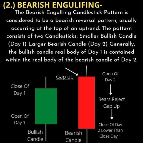 So, what exactly is a bearish engulfing pattern ? Imagine a scenario where the bulls (buyers) have been in charge, pushing the price of an asset upwards. Suddenly, the bears (sellers) decide to flex their muscles. The bearish engulfing pattern is a two-candlestick formation that paints this picture perfectly. Here’s how it works: the pattern appears at the end of an uptrend. The first candlestick is a small, bullish (green or white) candlestick, showing that the bulls are still in control. However, the next candlestick is a large, bearish (red or black) candlestick that completely engulfs the body of the previous one. This means the bearish candlestick’s body opens higher than the previous day’s close and closes lower than the previous day’s open. Get it? This engulfment signals a significant shift in market sentiment. The bears have not only arrived but have also demonstrated that they are stronger than the bulls, and they are here to stay. It shows the bears are in full control and pushing prices down. It’s a clear indication that the bulls are losing steam and that the trend might be reversing. That’s the essence of the bearish engulfing pattern: a visual representation of a power struggle in the market, with the bears ultimately taking charge. The shape and color, as they say, are everything!