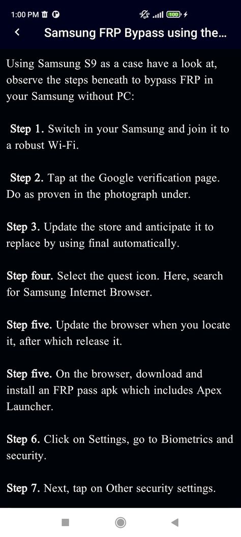 • Follow the Prompts: Once the APK is installed, open it and follow the on-screen prompts. This usually involves accessing the phone’s settings and disabling FRP or adding a new Google account.