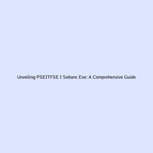 Unveiling PSEITFSE I Sebanc Ese: A Comprehensive Guide