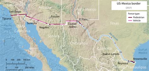 A US Mexico border map illustrates the border’s path, starting from the Pacific Ocean in the west and extending to the Gulf of Mexico in the east. Major cities along the border include San Diego, California, and Tijuana, Baja California, in the west; El Paso, Texas, and Ciudad Juárez, Chihuahua, in the center; and Brownsville, Texas, and Matamoros, Tamaulipas, in the east. The map highlights the diverse terrain, including mountains, deserts, and the Rio Grande, which serves as a natural boundary for a significant portion of the border. Mapping the border is crucial for understanding its geographical challenges and planning infrastructure and security measures. The map also reveals the intricate network of roads, railways, and ports of entry that facilitate trade and travel between the two countries. Visualizing the border through maps helps in identifying strategic locations for border patrol and customs enforcement, as well as understanding the environmental and ecological factors that impact the region.