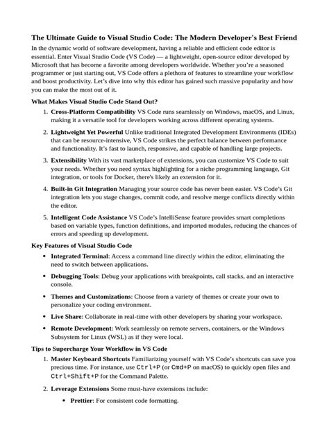 Now that you’ve got VS Code installed, let’s talk about the features that are absolute goldmines for content creators and managers . One of the most powerful aspects of VS Code is its extensive ecosystem of extensions. These are like little add-ons that supercharge its capabilities. For publishers, think extensions that help with Markdown writing, spell-checking, grammar correction, and even specialized tools for e-book formatting like EPUB. You can find extensions by going to the Extensions view in the sidebar (it looks like a puzzle piece). Simply search for what you need – for instance, searching for ‘Markdown’ will bring up tons of helpful tools. A good Markdown editor extension will provide features like live preview, table of contents generation, and enhanced formatting options. This is HUGE for drafting manuscripts or blog posts because Markdown is simple, readable, and easily convertible to other formats. Another killer feature is the integrated version control using Git. If you’re collaborating with authors, editors, or designers, Git is essential. VS Code has fantastic Git integration built right in. You can easily track changes, commit your work, push to repositories (like GitHub or GitLab), and manage different versions of your documents without ever leaving the editor. This prevents those ‘which version is the latest?’ nightmares. Imagine tracking all edits to a manuscript collaboratively – VS Code makes it seamless. Furthermore, the find and replace functionality is incredibly robust. You can search for text across your entire project and replace it with something else. This is a lifesaver for updating author names, changing publication dates, or making consistent style edits across hundreds of pages. For complex replacements, you can even use regular expressions, which are super powerful for pattern matching. Don’t forget about the built-in terminal – it’s your gateway to command-line tools that can automate tasks like converting file formats (e.g., using Pandoc) or deploying your website. Setting up custom tasks and snippets can also save you tons of time. For example, you can create a snippet that automatically generates a standard chapter header or a template for a book description. These seemingly small features add up to massive time savings and improved consistency in your publishing output. It’s all about working smarter, not harder, and VS Code gives you the tools to do just that. We’re making content creation and management a whole lot less of a headache!