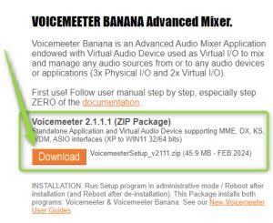 2. Find Voicemeeter Banana: Navigate to the Voicemeeter Banana page. You’ll see different versions of Voicemeeter, but make sure you select the Banana version, as it’s the most feature-rich.
