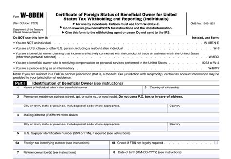 Now that we know why the W-8BEN is a big deal, let’s break down the actual form. Don’t let the lines and boxes intimidate you, guys! We’ll go section by section, and you’ll see it’s totally manageable. The Form W-8BEN, Certificate of Foreign Status of Beneficial Owner for United States Tax Withholding and Reporting (Individuals) , has a few key parts you need to pay attention to. First up, Part I: Identification of Beneficial Owner . This is where you’ll put your basic info. You’ll need your name, country of citizenship, and your permanent residence address. Crucially, you’ll also need to provide your U.S. taxpayer identification number (TIN) if you have one. For individuals who are not U.S. persons, this is usually your foreign tax identification number (like a social security number in your country). If you don’t have one, you can often leave this blank, but be prepared to explain why if asked. Next is Part II: Claim of Tax Treaty Benefits . This is the part where you can potentially get that sweet, sweet reduced tax rate. You’ll need to indicate the country with which the U.S. has an income tax treaty, the specific article of the treaty that allows for the reduced rate or exemption (this often relates to the type of income you’re receiving, like dividends or royalties), and the rate of withholding. This is where doing a little homework on your country’s tax treaty with the U.S. comes in handy. If you’re not claiming treaty benefits, you can skip this part. Then you have Part III: Certification . This is where you essentially swear that everything you’ve put on the form is true, correct, and complete. You’ll provide your signature, name (typed or printed), and the date. It’s your official stamp of approval, saying “Yep, this is me, and this is my foreign status.” Remember, this form is generally valid for three years from the date you sign it, so keep an eye on its expiration. Each section serves a specific purpose in confirming your non-U.S. status and any applicable tax treaty benefits, ensuring the withholding agent can correctly report and remit taxes. Understanding each part makes the whole process much less daunting, right?