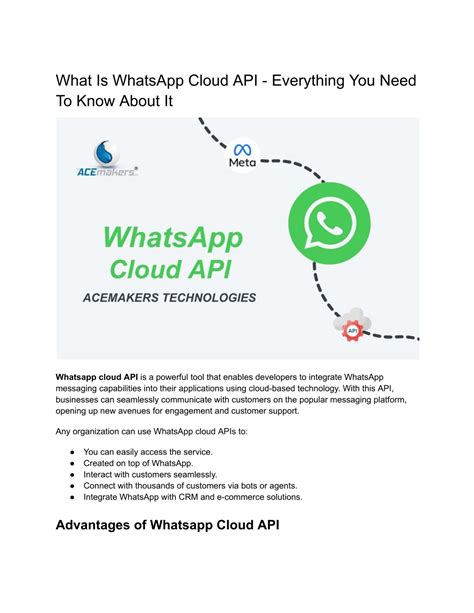 Another often overlooked advantage is cost savings . The Cloud API eliminates the need for expensive infrastructure and IT support, reducing your overall operational costs. This is particularly beneficial for small and medium-sized businesses that may not have the resources to invest in complex IT systems. By offloading the infrastructure management to Meta, you can focus on your core business activities and allocate your resources more efficiently. The reduced complexity is also a significant advantage. The Cloud API simplifies the integration process, making it easier for businesses to get started with WhatsApp messaging. This reduces the time and effort required to set up and maintain the API, allowing you to focus on developing your messaging strategy and engaging with your customers. In conclusion, the WhatsApp Cloud API offers a multitude of benefits, including enhanced customer engagement, improved customer support, increased sales, cost savings, and reduced complexity. By leveraging the power of WhatsApp for business communication, you can build stronger relationships with your customers, drive revenue growth, and gain a competitive edge in today’s digital landscape.